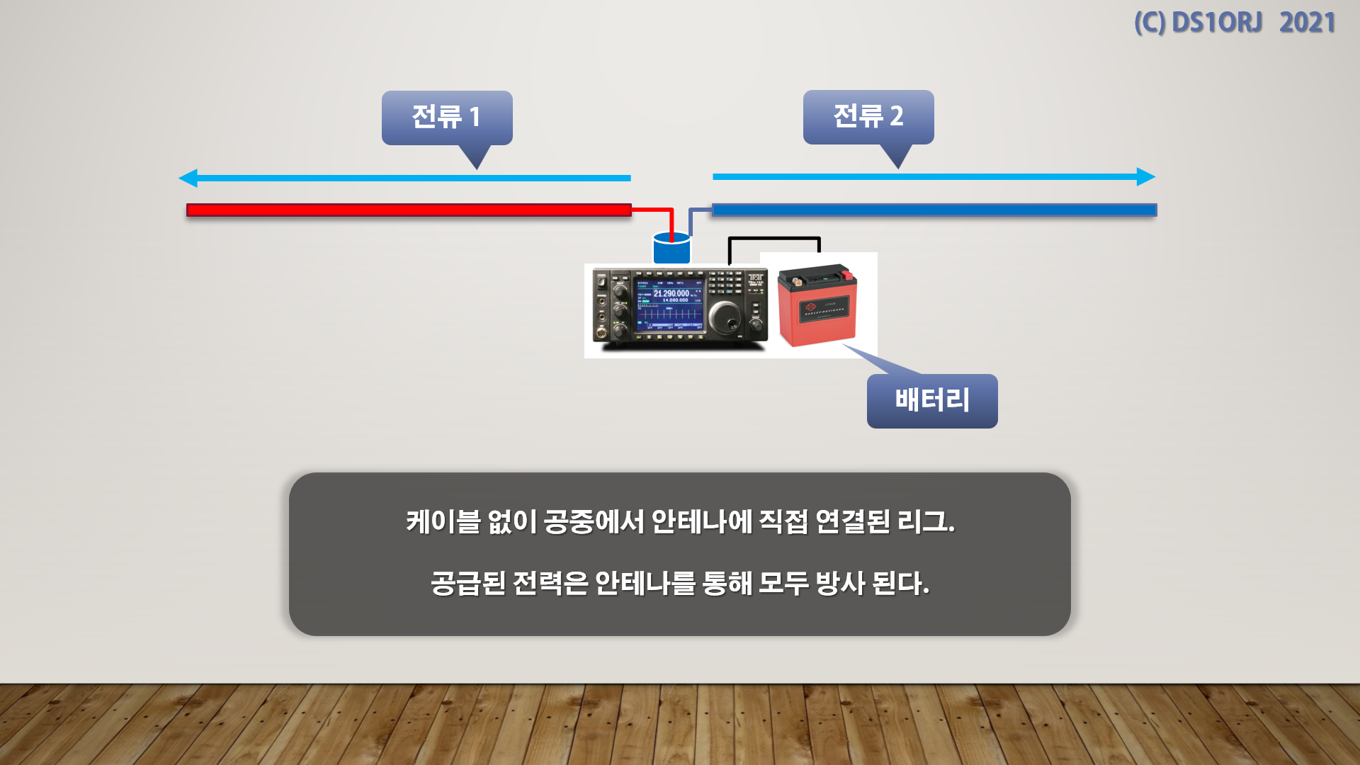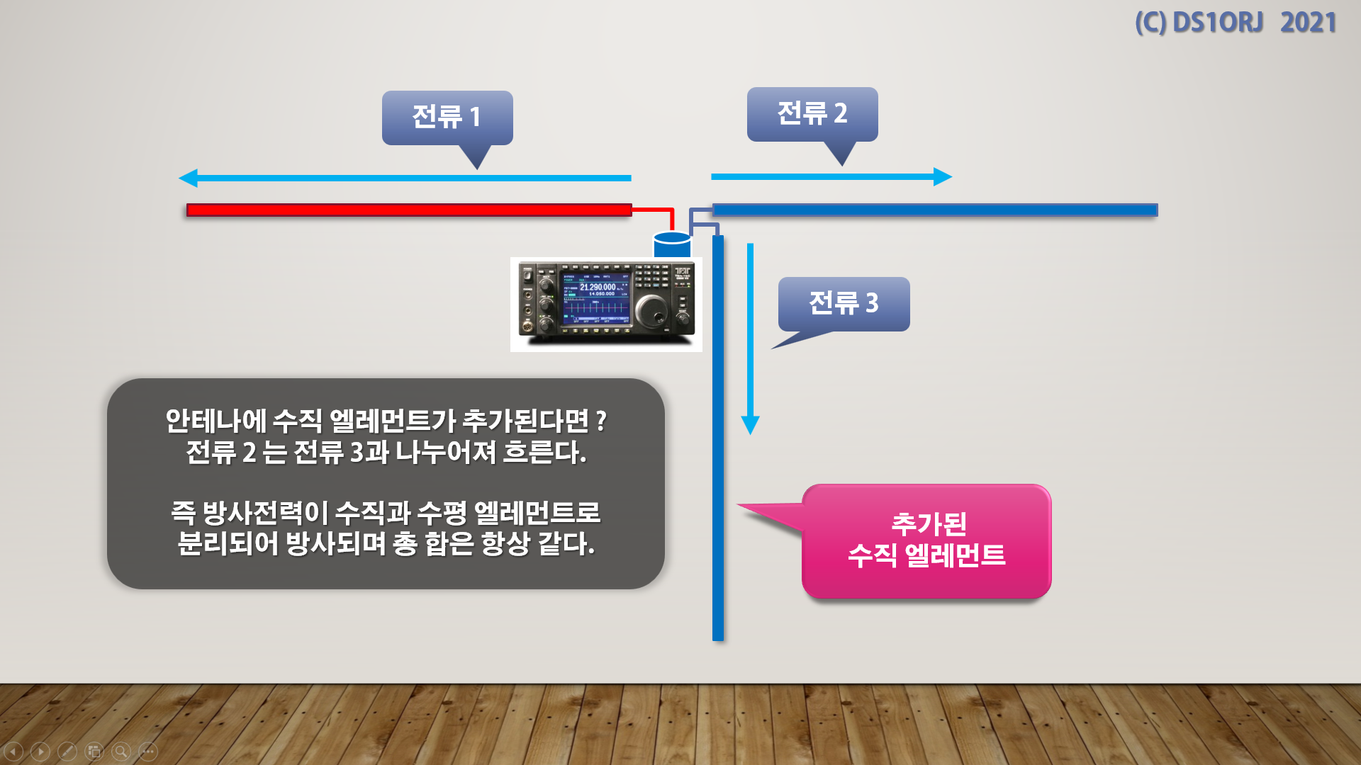 이제 전원선은 수직 엘레먼트로 작동하고 RF 전류가 흐른다.