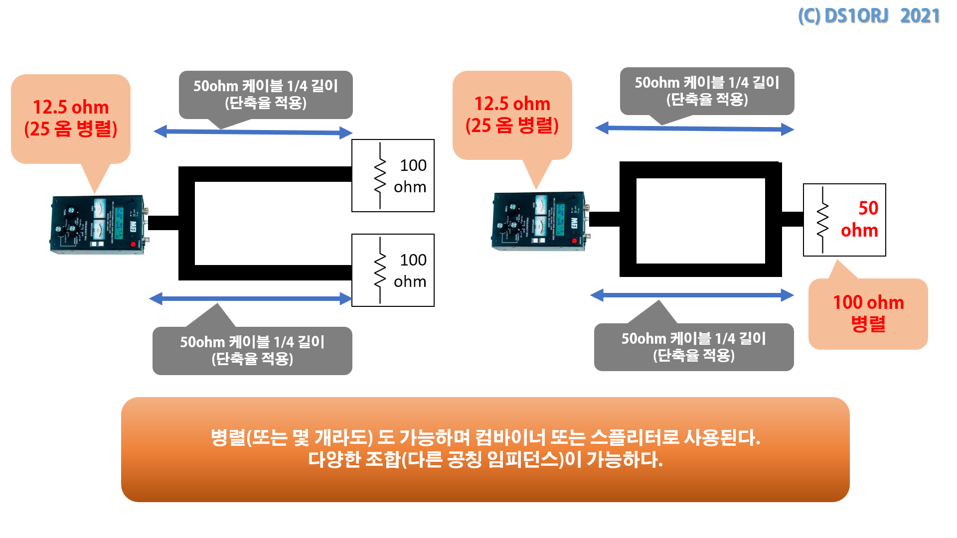 75ohm -> (50ohm 케이블의 1/2 배수 길이) -> 75ohm