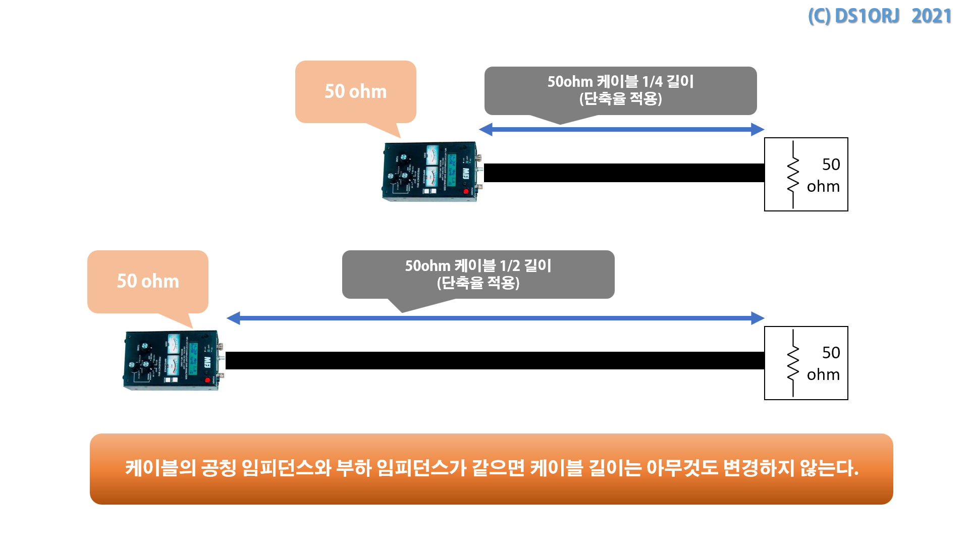 부하 임피던스와 급전선의 임피던스가 동일할 경우 케이블 길이는 아무 것도 변경하지 않는다. (중요)