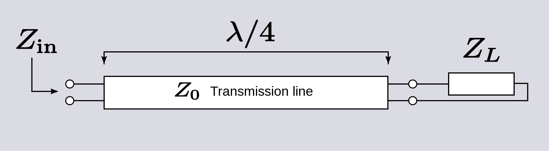 1/4 파장 전송선로는 임피던스를 변환하는데 자주 사용된다.