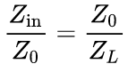 보다 유용한 아래의 수식은 임의 임피던스 변환(입력과 부하 임피던스 지정)에 필요한 전송선로 특성 임피던스(공칭 임피던스)를 역산하는 수식이다. (https://eng.libretexts.org/Bookshelves/Electrical_Engineering/Electro-Optics/Book%3A_Electromagnetics_I_(Ellingson)/03%3A_Transmission_Lines/3.19%3A_Quarter-Wavelength_Transmission_Line)
