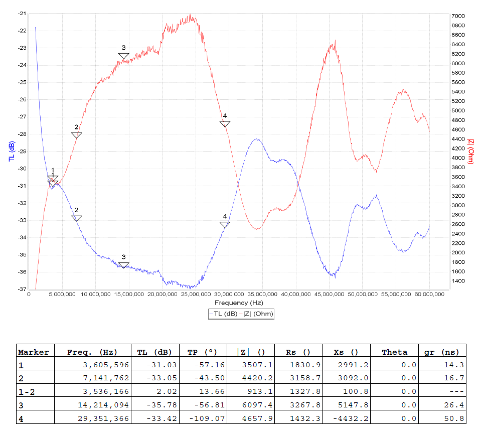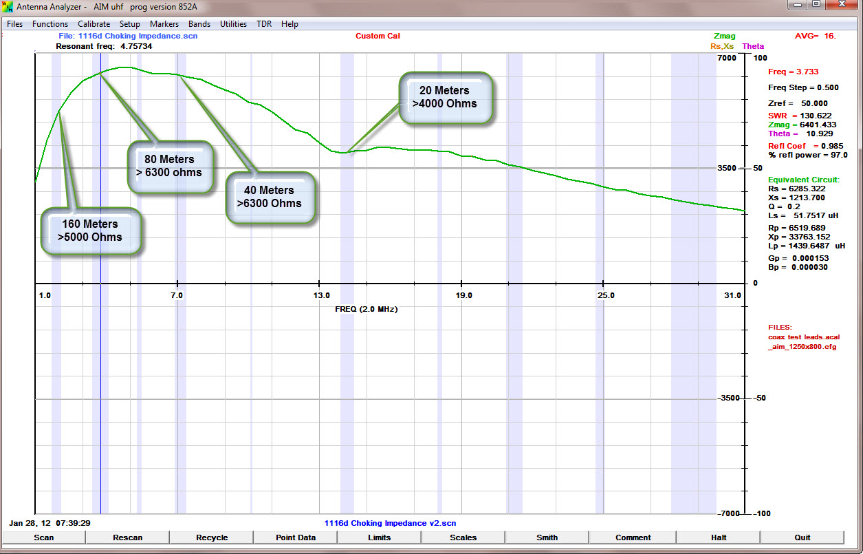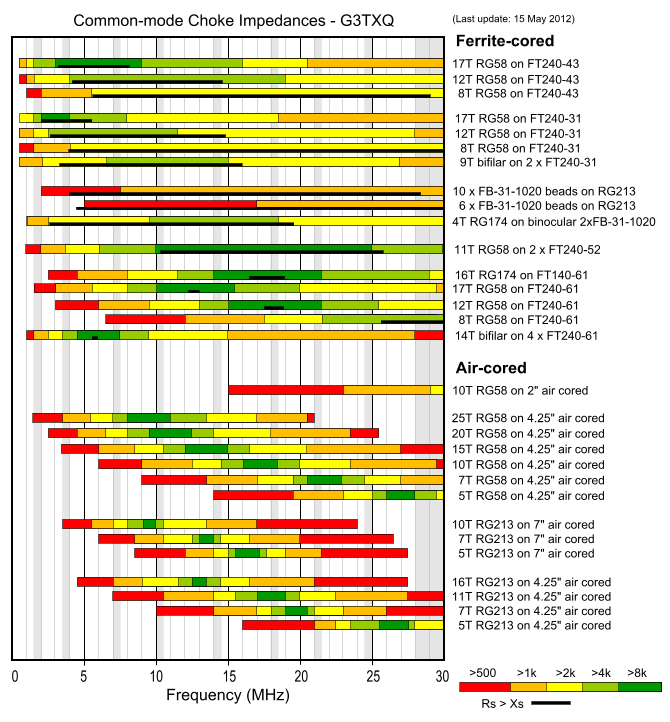 3.5, 7 에서는 어느정도 사용 가능하지만 14MHz 를 넘어서면 초킹 임피던스가 급격히 하락하고 바룬이 제대로 역할을 하지 못한다는걸 알 수 있다.