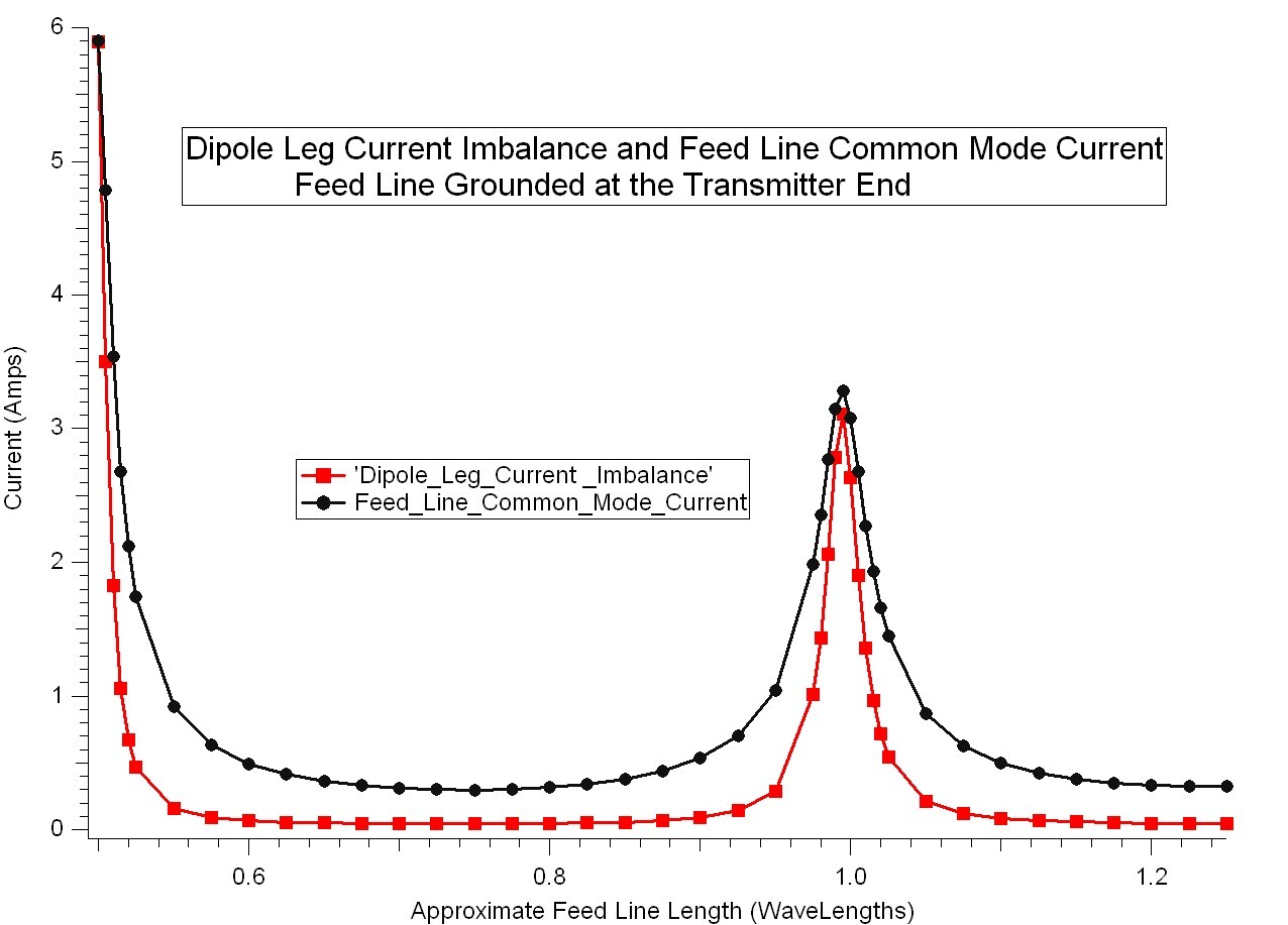 접지가 된 상태라면 급전선 길이를 1/4 파 홀수배로 유지하면 CMC 가 최소로 된다. 단 여기서 "급전선" 의 길이에는 접지 포인트까지의 경로 길이가 포함되어야 하며 접지는 양호한 접지 저항을 제공해야 한다.