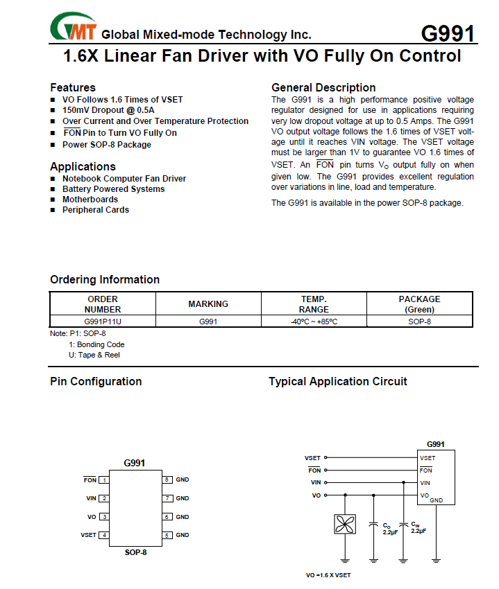 2. 이 전압은 냉각팬 컨트롤러 IC 입력에 연결되고 1.6 배 곱해져 팬을 구동한다.