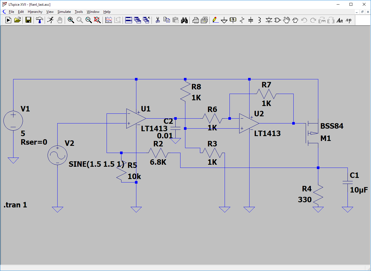 설계시에 "공학용 계산기" 등을 쓸 수도 있으나 요즘 같은 시대에 굳이 어렵게 그럴 필요는 없고 적당한 SPICE 툴을 쓴다. 여기서는 가장 구하기 쉬운 LT SPICE (리니어 테크롤로지사에서 공짜로 배포하는 SPICE) 를 쓴다.
