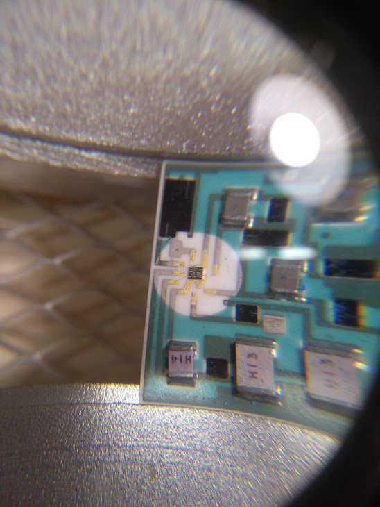 The bonding wire looked okay, but it is measured that the trace on the VCC(+) side is broken.