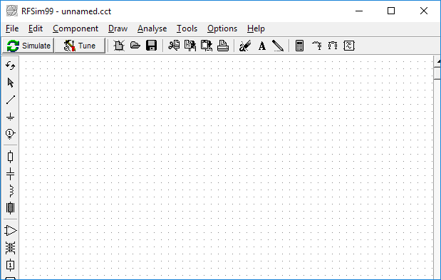 1. RFSim 을 실행하면 아래 화면처럼 보인다.(일부 버튼이 안보이면 윈도우를 최소로 줄였다가 키우면 보임)