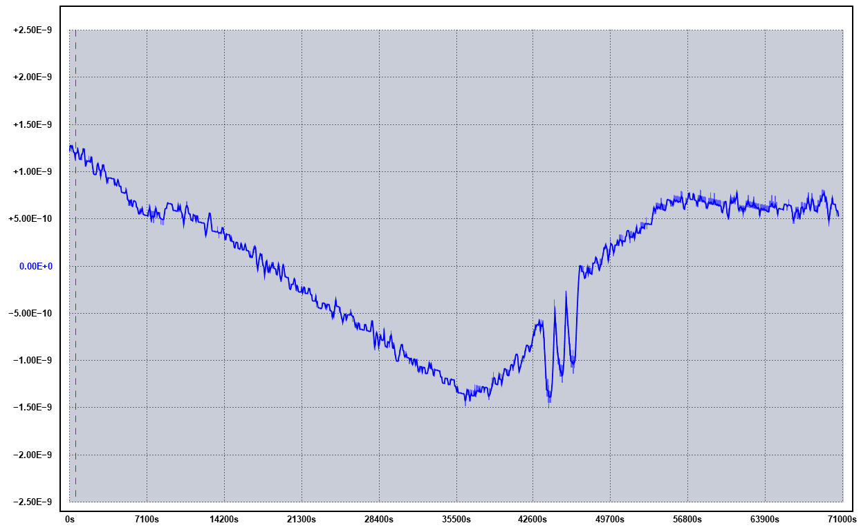 20시간 동안 약 +-1.5E-9 (+- 0.015Hz) 드리프트 한다.