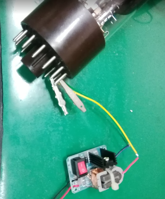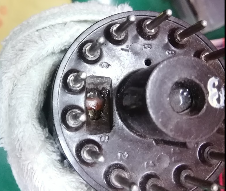CRT 가 연결되면 고전압 발생기의 소모전력이 증가하는 것이 관찰되므로 틀림없이 두 핀 간에 절연이 불량해진 것이 분명해 보인다.