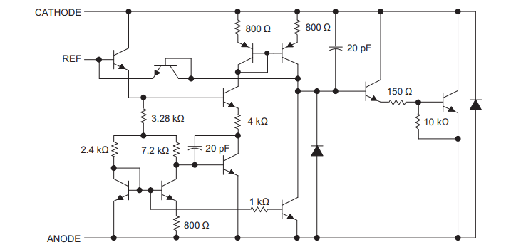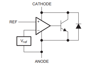 작동은 매우 간단하다. (TL431 데이터 시트 https://www.ti.com/lit/ds/symlink/tl431.pdf )