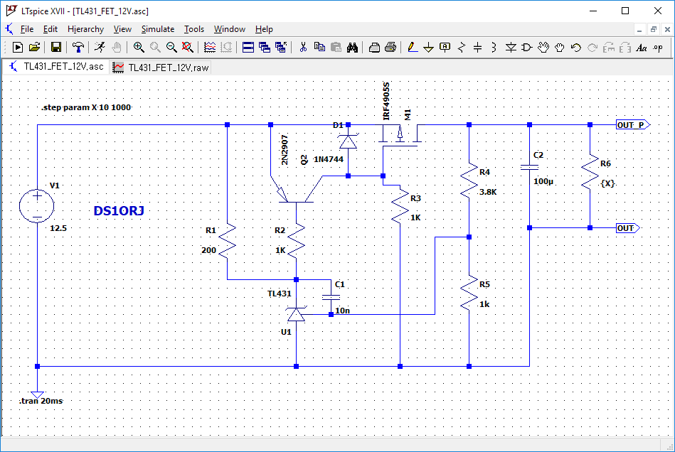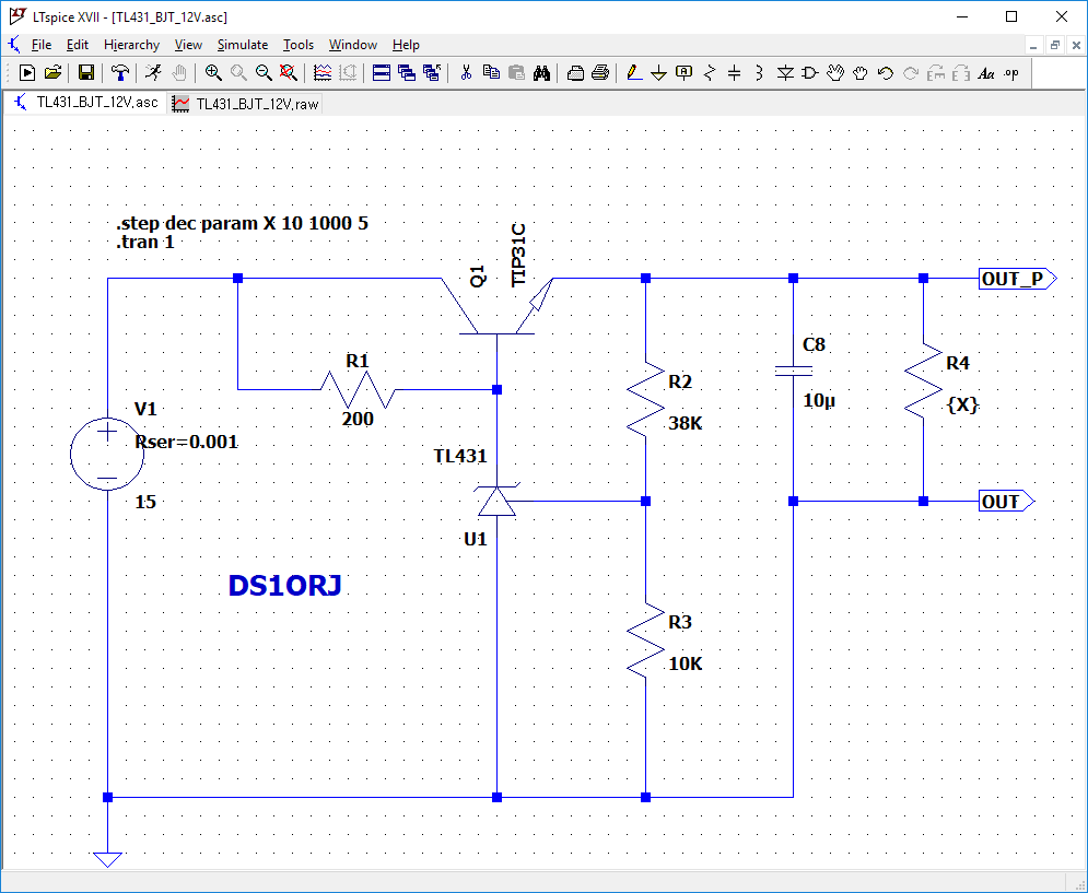 ※ 이 회로는 이미터 플로워이므로 이론상 문제 없이 작동하지만, 더 나은 리플 감소 성능을 원한다면 TL431 양단에 전해 캐패시터를 추가하면 성능이 개선된다.( 참고 Capacitance multiplier 회로 검색 )