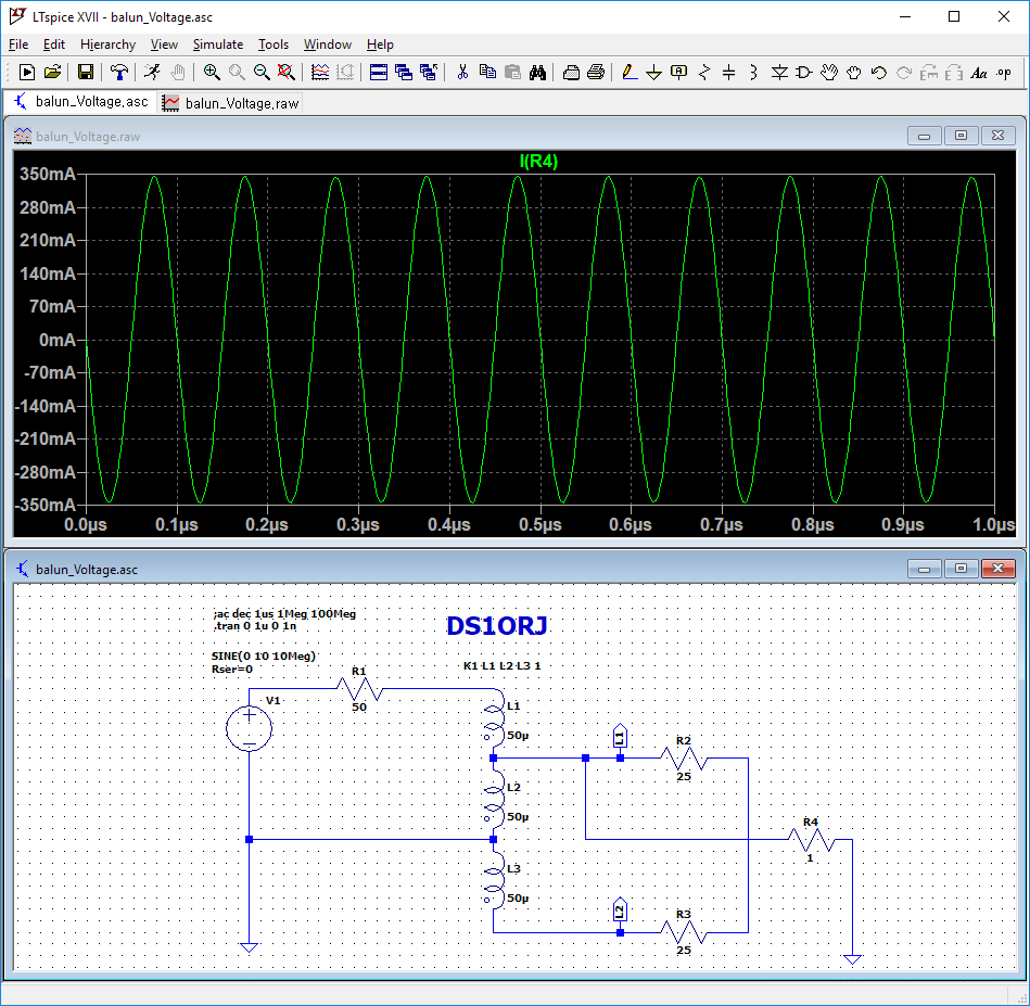 이 글에서는 국내에서 많이 사용하는 1:1 전압바룬의 작동을 시뮬레이션 해본다.