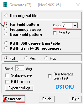 ● 주파수 지정이 안되어 있다면 7 메가를 선택한다. 아래 패턴은 "Full" 선택 그리고 맨 아래 Generate 를 누른다.