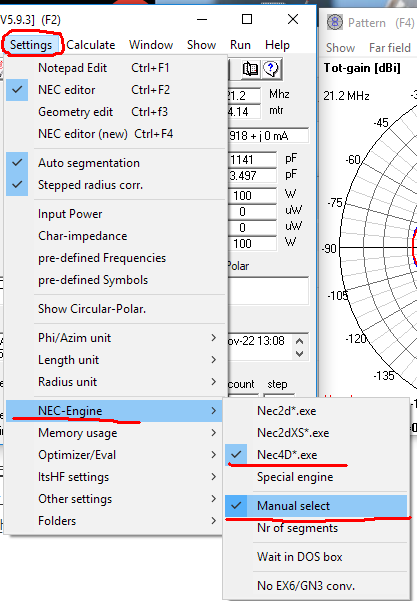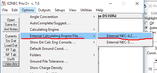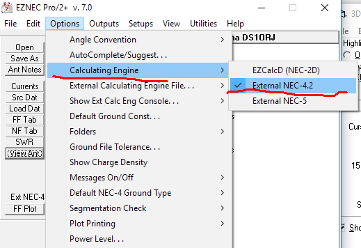 ※ 이 파일들을 구할 수 있다면 아래와 같이 세팅하여 NEC 2 가 아닌 4.2 버전을 계산용 엔진으로 사용할 수 있다.