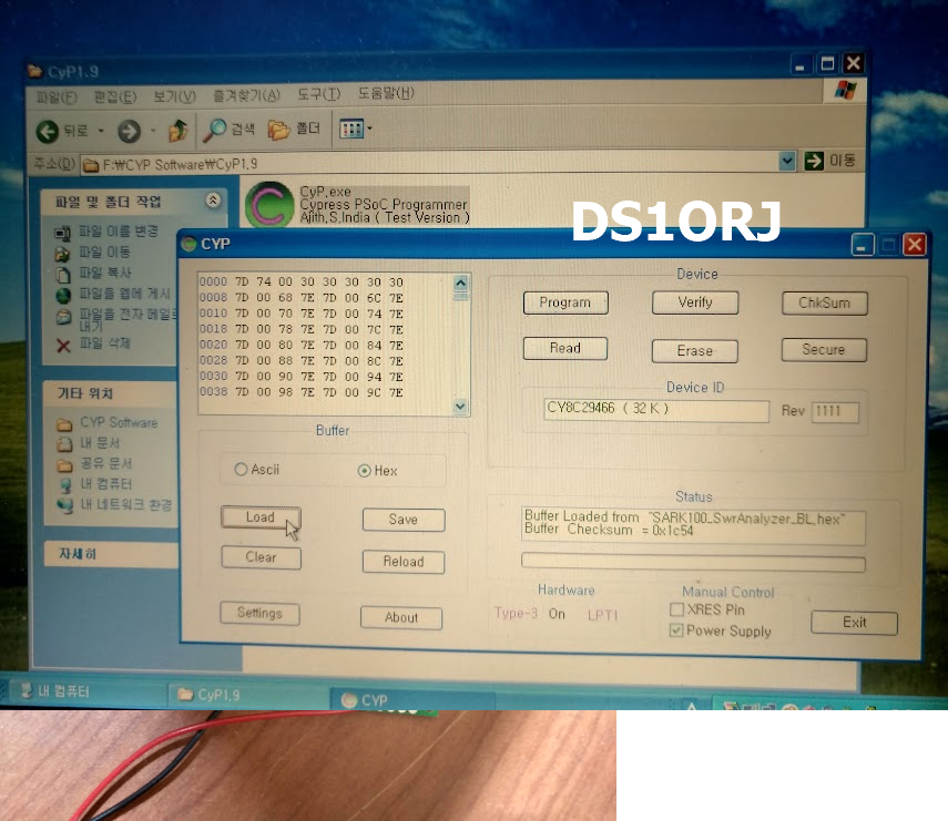 Windows XP 에서 CyP 가 실행되어 Write 대기중인 모습.