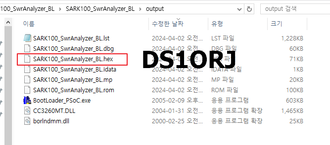 펌웨어 파일명은 확장자가 .hex 이다. (아래 참고)