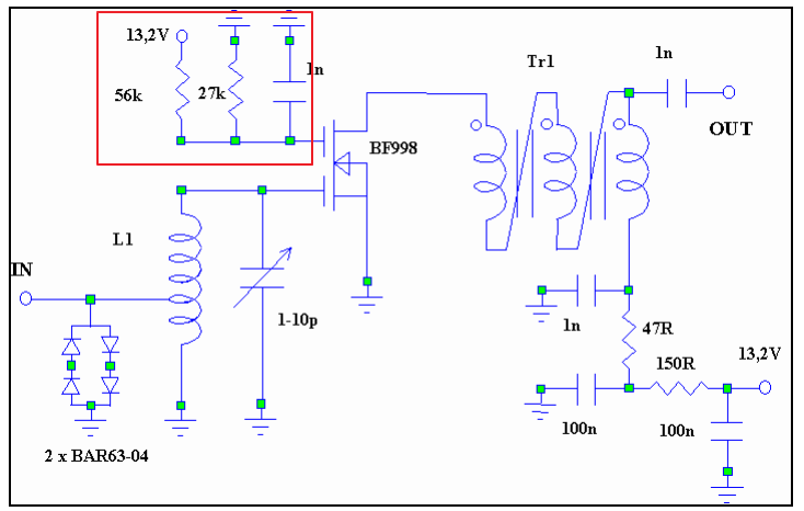 1. Introduction After careful inspection of different designs that could be used as the front end amplifier of my new 144/14 MHz transverter design I finally stopped at the Infineon's BF998 MOS FET tetrode. I have very good experience with the old BF981 so