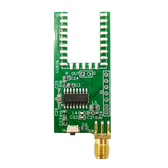 따라서 아래와 비슷한 변환기판(또는 만능기판 조각을 잘라서 위에 납땜)이 필요하다. 사실상 현재 양산되는 RF 부품은 거의 모두 표면실장형(SMD)이므로 이러한 부품 패키지를 사용하는데 익숙해져야 한다.