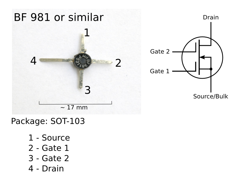 저자의 글을 읽어보면 알겠지만 GaAs(갈륨비소) FET 대신 BF998 을 사용한다.(비용 및 입수 용이성)