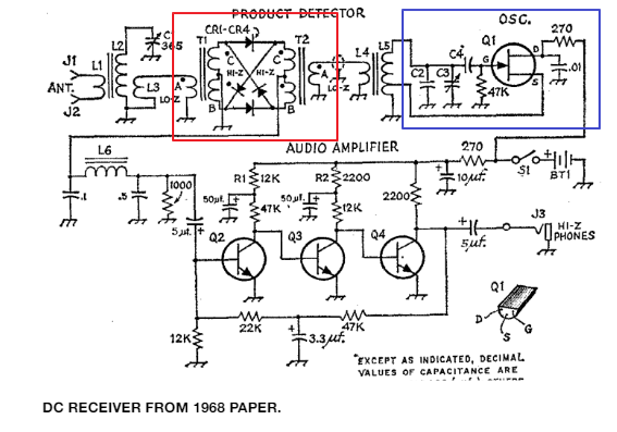 파란색 사각형 J-FET(Q1) 는 LO(Local Oscillator, 국부 발진기) 이다.
