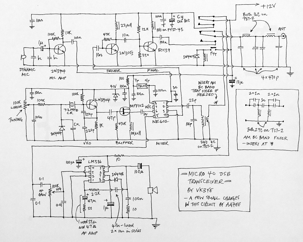 아래는 Micro 40 DSB 송수신기의 회로이다.