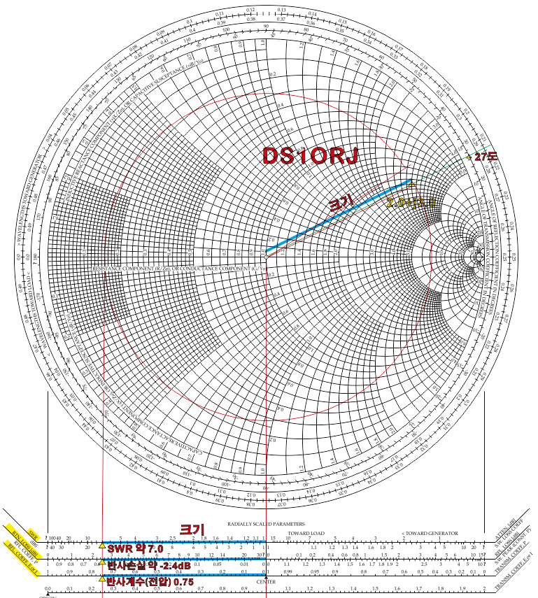 아래와 같이 원래 스미스 차트 하단에는 환산에 필요한 스케일이 준비되어 있다.