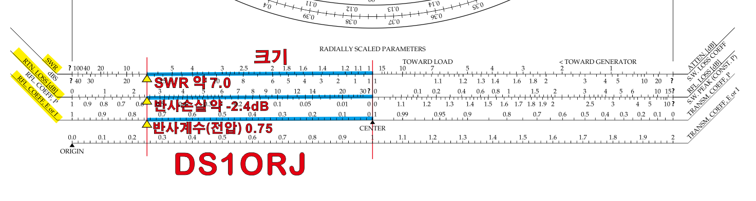 크기를 그대로 대입시켜서 보면 SWR 은 약 7.0 임을 알 수 있고