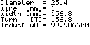 두번째는 보빈 지름(mm), 감긴폭(mm), 와이어 두께(mm) 로 회전수를 역산하여 L 값과 함께 알려주는 기능이다.