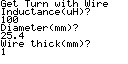 네번째 기능은 직경, 권선두께, 권선의 회전수를 입력 받아서 코일의 인덕턴스를 역산해준다.
