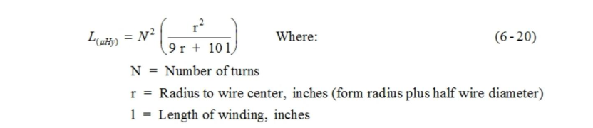 코일의 보빈 직경과 권선수로 인덕터 값을 계산하는 휠러의 공식