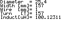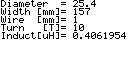주파수 (MHz) : MHz 필요한 인덕턴스 (L) : nH uH 코어 직경 (D) : mm 와이어 두께(권선직경) (d) : mm 감긴 폭 (W): inches mils mm 회전 수 (N): 필요한 와이어 길이: 미터(M) AC 저항 : 옴 품질계수 Q : Q 리액턴스 X: