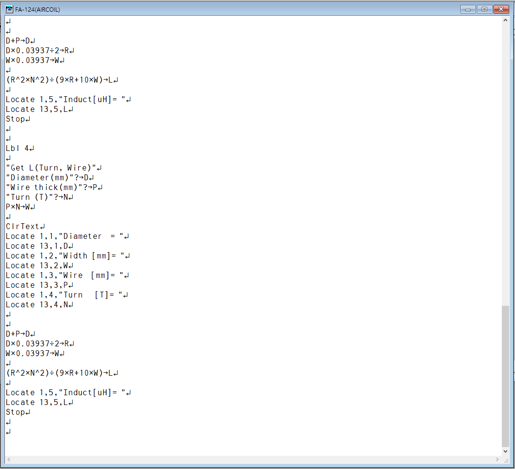 카시오 계산기 에어 인덕터(공심 코일) 계산 프로그램